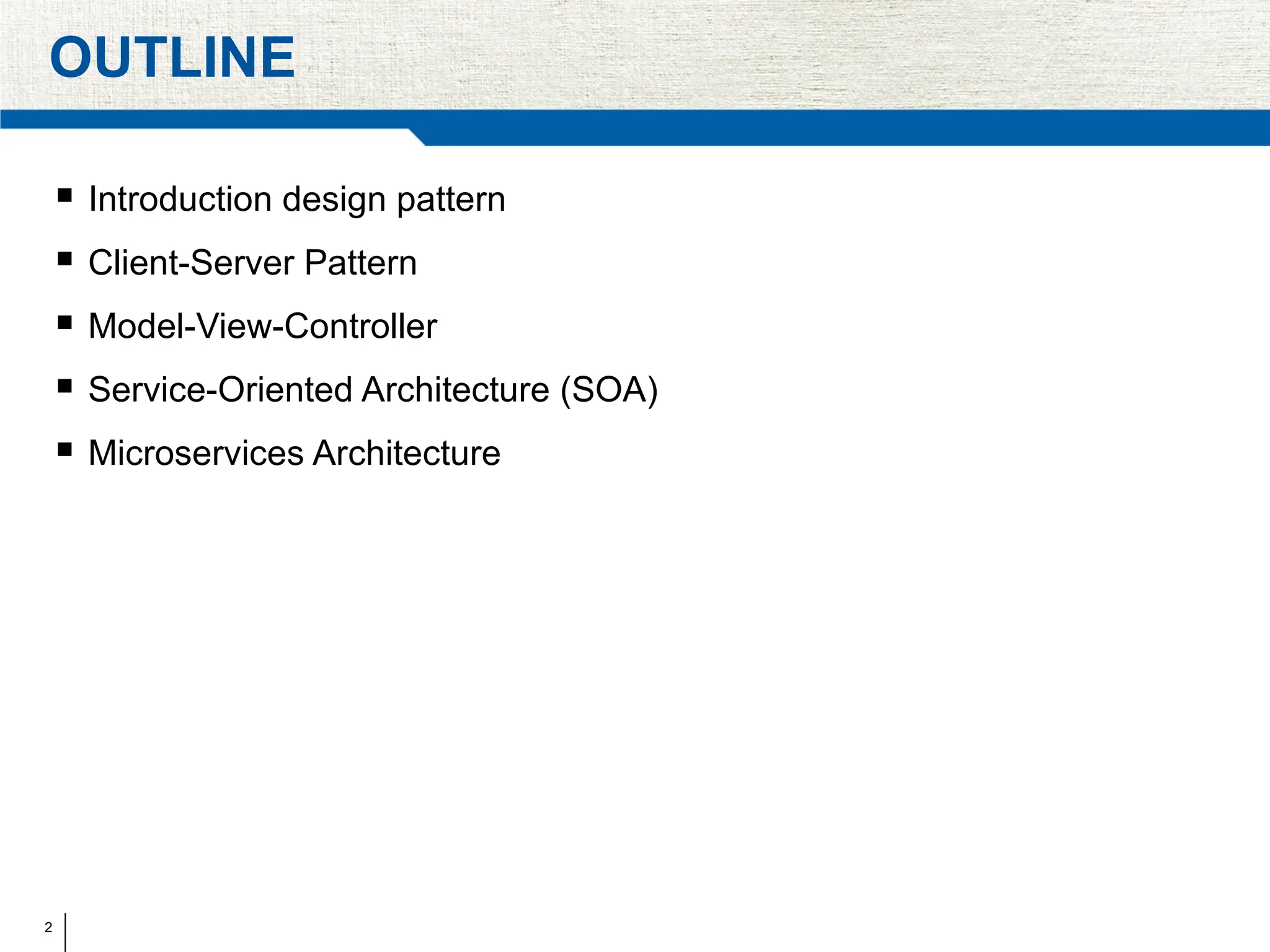 The document provides an overview of design patterns in web programming, focusing on client-server architecture, model-view-controller (MVC), service-oriented architecture (SOA), and microservices architecture. It details the principles and advantages of each pattern, emphasizing reusability, scalability, and modularity in distributed systems. The text outlines the essential components, communication protocols, and considerations for designing effective, maintainable systems.