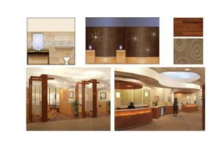 This document provides summaries of several design projects completed by Ashley Feichter, including interior design projects for a graphics firm, oncology center, and research center. It also lists other graphic design and model work. The projects aimed to create collaborative and healing spaces through features like connecting events, central radial plans, and using natural light inspiration.