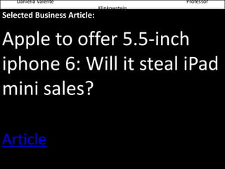 This document discusses research conducted on Apple device usage by students on a college campus. The research included ethnographic observations that found students using phones and iPads for communication, social media, games, and schoolwork. However, students complained about low battery life and needing larger screens for productivity tasks. The research concluded that students want mobile devices with longer battery life and bigger screens.