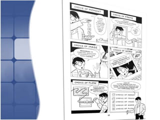 The document discusses the importance of design principles in digital media for education, emphasizing clarity in various aspects such as focus, frame, image, word, and flow. It references Scott McCloud, a comic artist known for his work on visual storytelling, who outlines how these five choices can enhance lesson effectiveness. Additionally, it includes resources for further reading and acknowledgments related to the content.