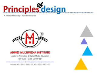 The document outlines a workshop presentation by Ravi Bhadauria at the ADMEC Multimedia Institute focused on design principles for various design disciplines. It covers essential design elements, common design principles, and gestalt psychology's role in shaping visual perception, emphasizing the importance of space, contrast, and visual weight in design. The presentation aims to provide valuable insights for both novice and experienced designers to enhance their understanding and application of effective design strategies.
