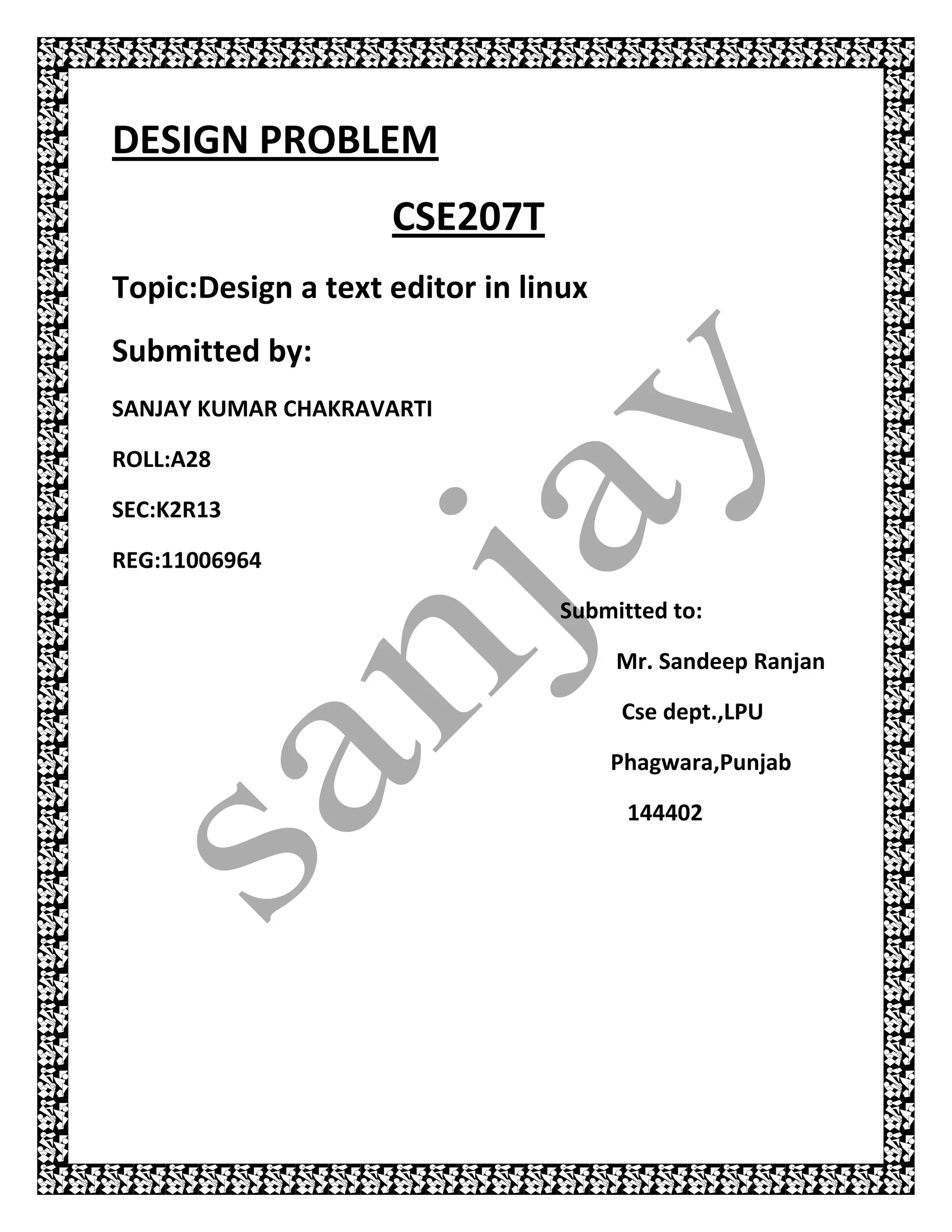 This text editor design document contains: