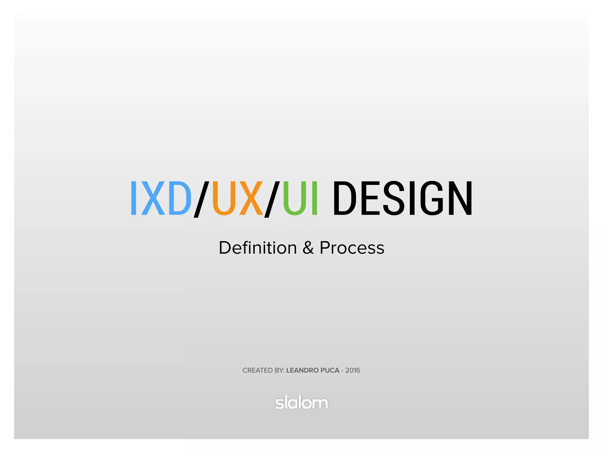 This document defines and compares interaction design (IxD), user experience (UX) design, visual (UI) design, and the roles involved in the design process. IxD focuses on satisfying user needs and desires. Personas with backstories are used to represent users. UX design incorporates disciplines like IxD to positively impact the overall user experience. UI design finalizes visual details. Clients are classified A, B, C based on budget, with A having the largest budget and most deliverables. The roles involved include clients, sales teams, stakeholders, project managers, developers, lead designers, and UI designers.