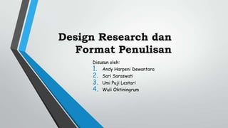 1. Dokumen tersebut membahas tentang design research dan format penulisan hasil penelitian design research.