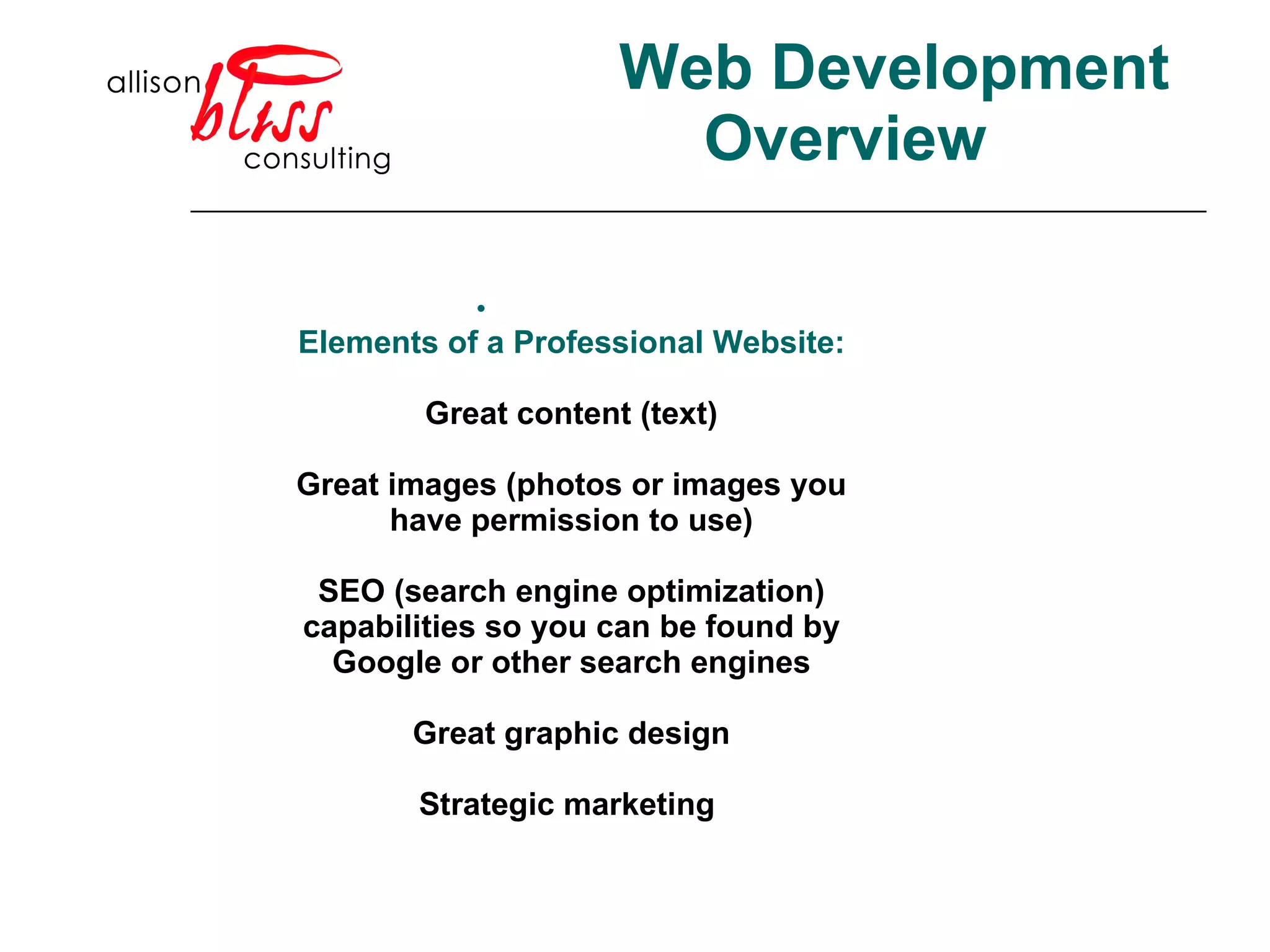 The document discusses the elements that will be included in a web design package. It will provide 5 pages of content, installation of a selected theme, addition of images and text, security features, and a 1.5 hour training session. The design elements that can be customized include headers, navigation menus, sidebars, widgets, and page layouts. Over 1,000 themes are available to choose from to find a design that meets needs.