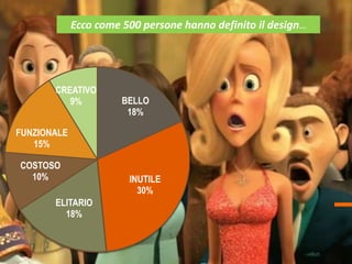 Il documento esplora come 500 persone definiscono il design, evidenziando aspetti come la creatività e la funzionalità. Propone una strategia di design per i giovani attraverso contest e social media, aumentando la consapevolezza e la visibilità delle aziende partner. Inoltre, discute l'importanza del design in contesti inaspettati e presenta opportunità di collaborazione tra aziende e studenti.