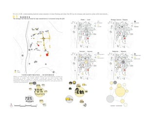 Car parking, food stalls, and homeless people sleeping were blocking pathways and pedestrian ways at night in front of a Hindu temple and along streets. Rubbish, items left outside shops, motorcycles parked randomly, and individual food stalls were also obstructing walkways and entrances, posing hygiene, visual, and accessibility issues for pedestrians.