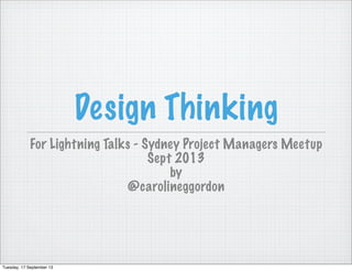 Design thinking is an approach that combines empathy, creativity, and rational problem solving. It involves first empathizing with users to understand their needs and perspectives, then defining the core problem, and ideating multiple potential solutions through prototyping and testing with users to refine the best ideas. The framework emphasizes empathizing with users before defining problems in order to generate more creative solutions.