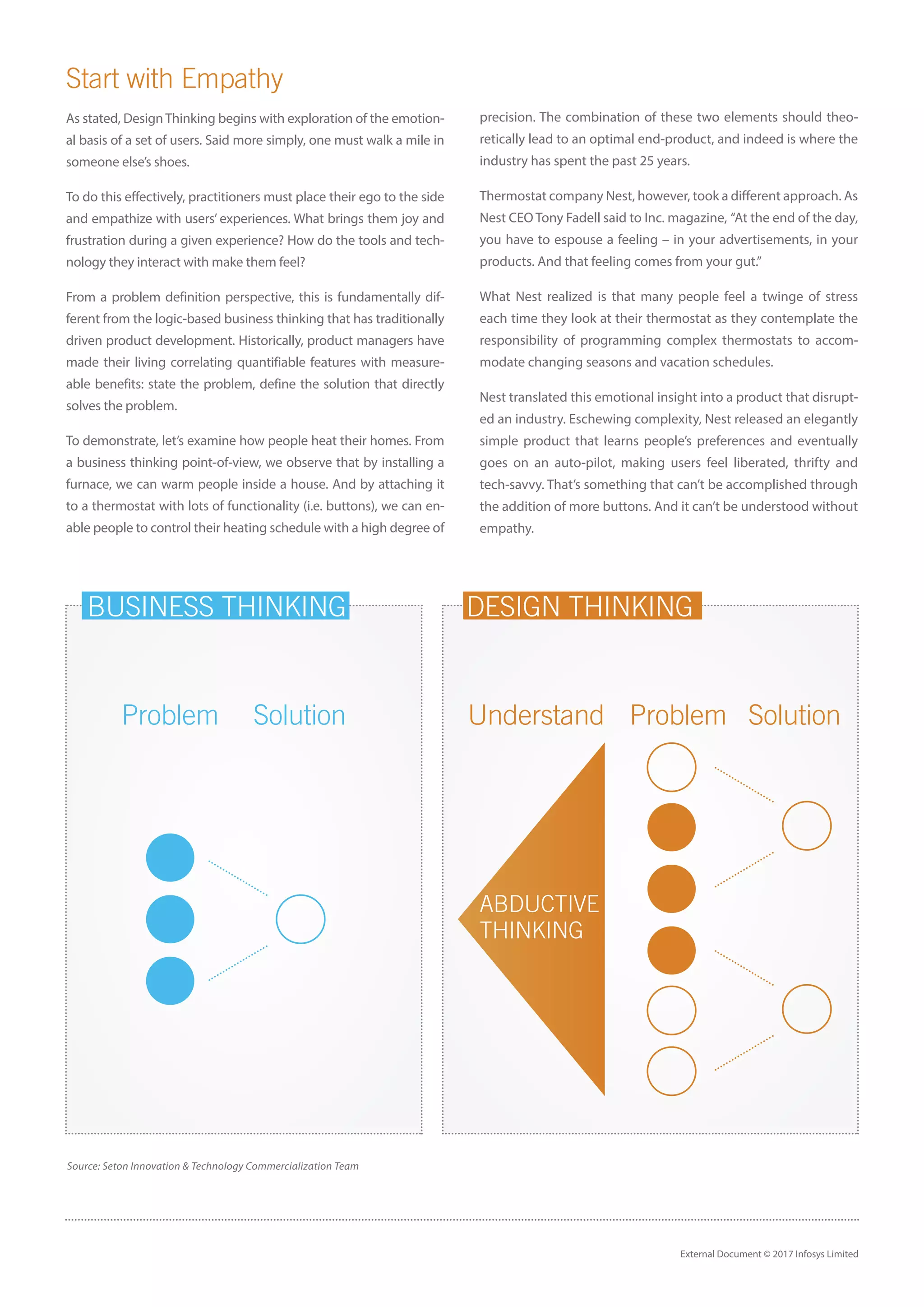 The document discusses the paradox of innovation in corporations, where there is a public claim of excellence but private concerns about performance. It emphasizes the design thinking approach as a teachable process for innovation that begins with empathy towards users' emotions and experiences, contrasting with traditional logic-based methodologies. Through modeling, prototyping, and testing, companies can foster innovation and improve productivity while understanding that thoughtful restraint in design can lead to more effective solutions.