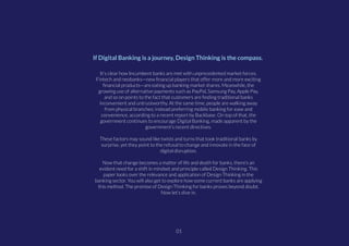 The document discusses how traditional banks are facing disruption from fintech and neobanks, emphasizing the need for design thinking to adapt to changing customer behaviors and preferences. Design thinking is presented as a human-centric approach that helps banks innovate and create more engaging customer experiences. The paper includes case studies of various banks that successfully implemented design thinking principles to enhance their services and maintain competitiveness in the digital banking landscape.