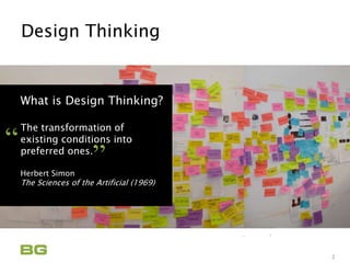 This document discusses design thinking principles for simplifying IT experiences in the cloud. It outlines 6 design principles: just enough, reusable logic, any device, fierce reduction, meaningful journey, and progressive disclosure. Each principle is then explained in more detail across multiple pages. The document also discusses how to apply these principles through a design process that includes discovery, design, development, and delivery.