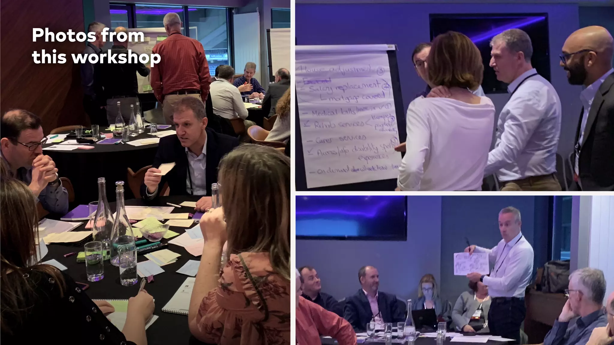 The workshop focused on using design thinking to develop solutions for three personas: Nora, a 62-year-old nurse preparing for retirement; Erin, a 28-year-old editor focused on her career and future family; and Ryan, a 32-year-old developer planning for life milestones. Participants worked in teams to identify challenges, measure success criteria, hypothesize solutions, and storyboard a concept. The goal was to apply human-centered design approaches to address each persona's needs through a potential product or service. Teams then presented their storyboards to the group.