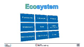 The document summarizes Matt McLarty's presentation on a design-based approach to microservices at a conference on September 10, 2018. It discusses applying five design disciplines (program, service, system, practice, and foundation design) to transform an enterprise architecture to be microservices-based. It also promotes attending a CA Technologies virtual summit on microservices and APIs on October 11 for more information on the methodology.