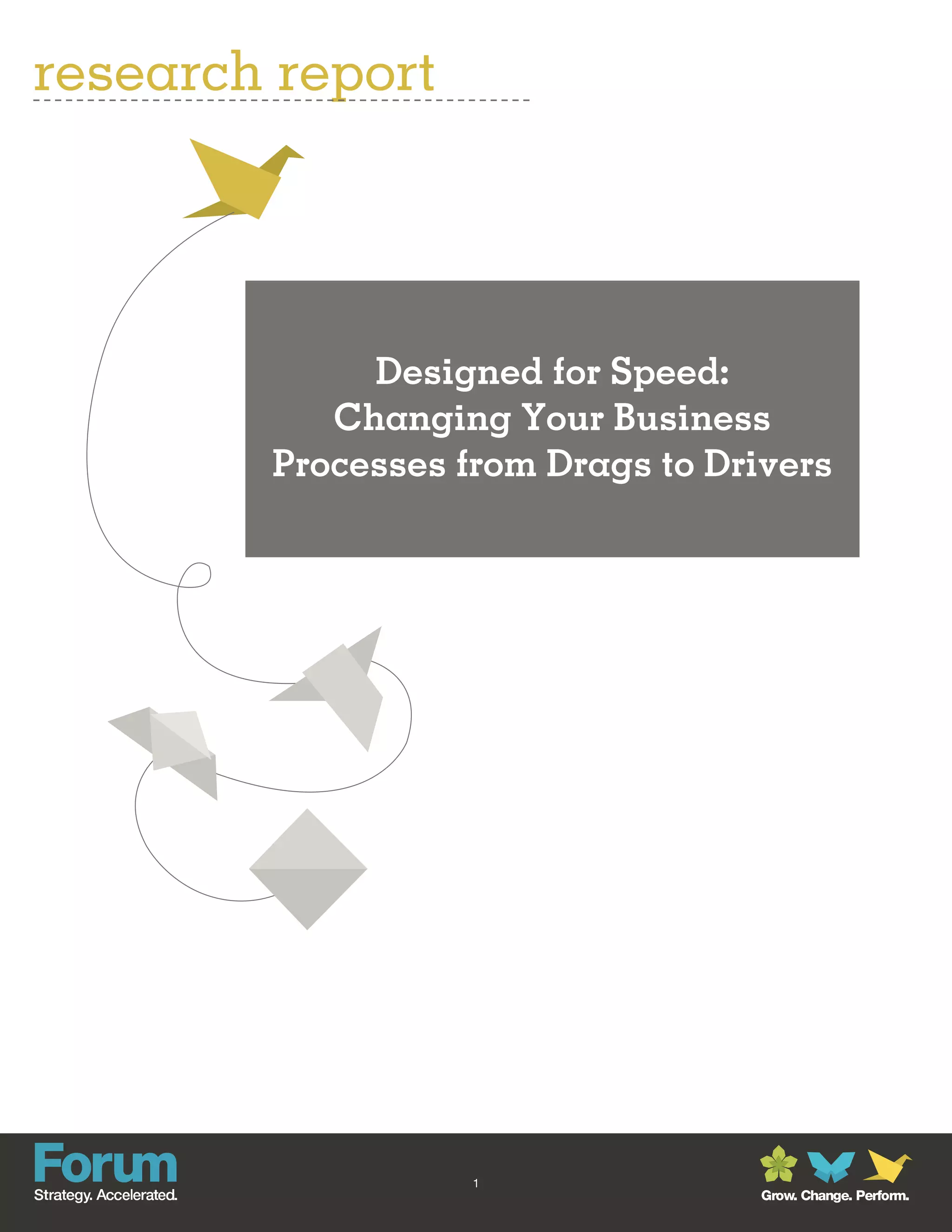 This research report discusses how focusing solely on business process efficiency can actually slow organizations down and limit growth. To achieve strategic speed, processes need to be both efficient and proficient by integrating factors that build clarity, unity, and agility among employees. The report outlines a process maturity model and explains how organizations evolve from focusing on individual job roles to optimizing cross-functional processes to integrating people factors. It provides examples of companies that advanced to higher stages of maturity and identifies five principles for designing proficient processes that foster skills development, knowledge sharing, and momentum around goals.