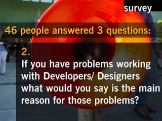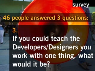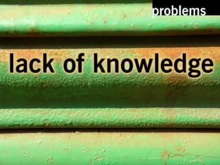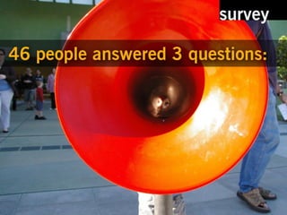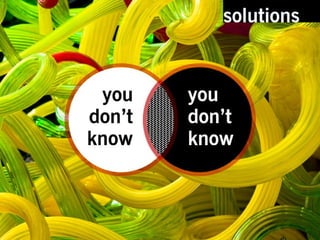 The document discusses the results of a survey that identified problems and proposed solutions. It recognizes the importance of knowing what you don't know and thanks the reader. Contact information and links to Flickr images are also provided.