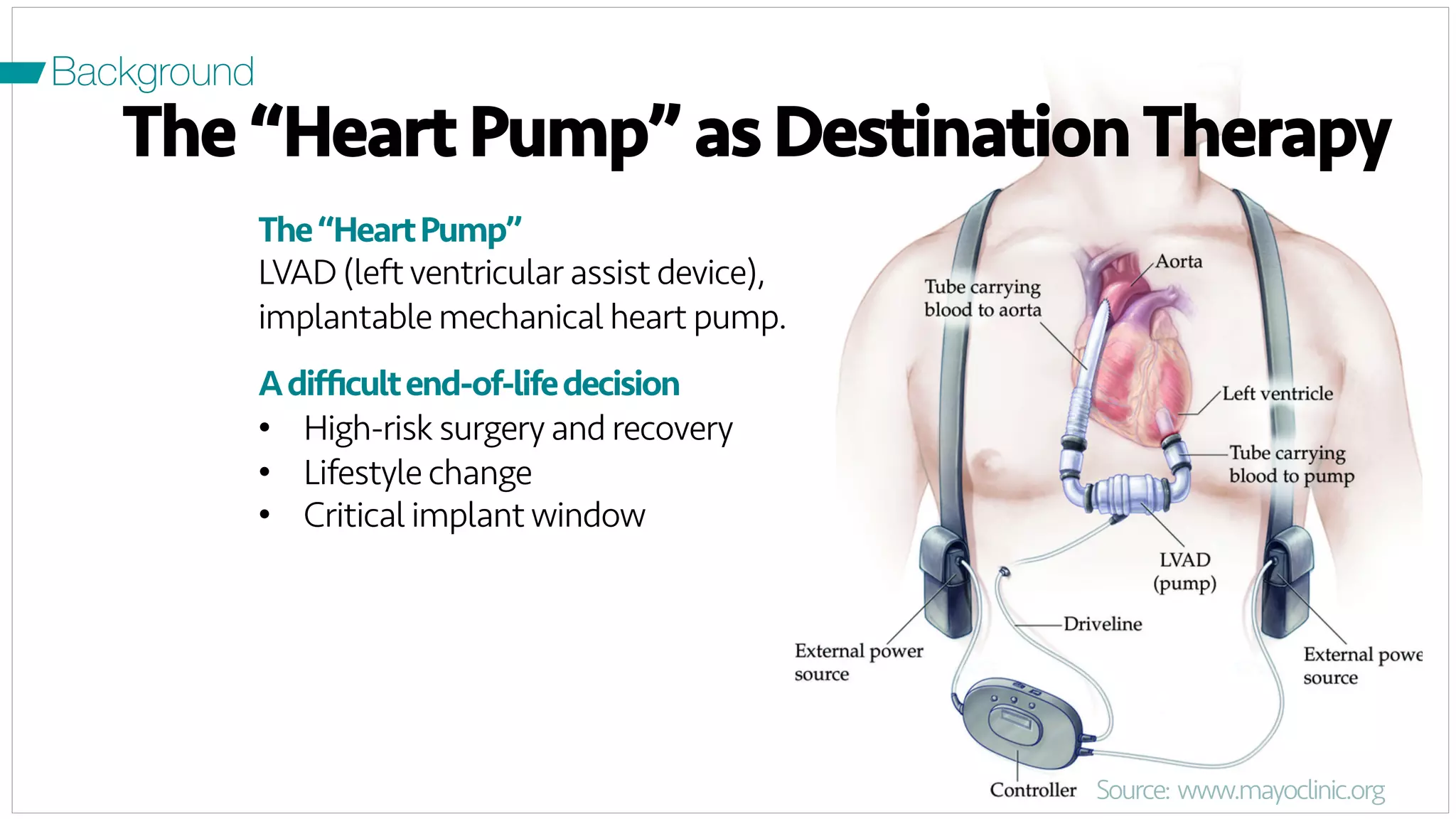 The document investigates the decision-making process surrounding the implantation of heart pumps (LVADs) in patients with advanced heart failure. It identifies barriers to the adoption of decision-support tools (DSTs) in clinical practice, such as lack of integration with workflow and physician skepticism about their usefulness. The findings highlight the need for DSTs that embrace clinical context and blend human and machine intelligence to better support clinicians in their decision-making processes.