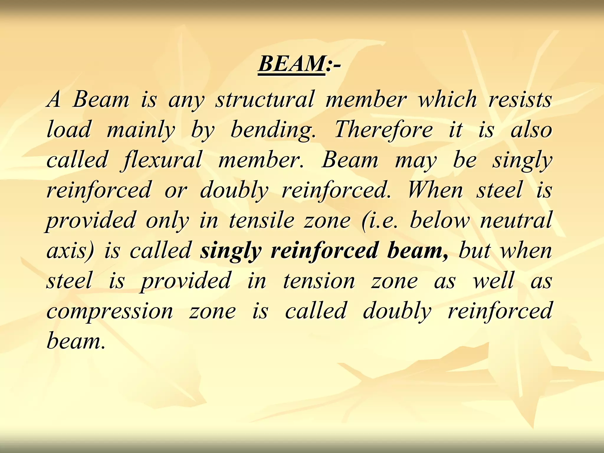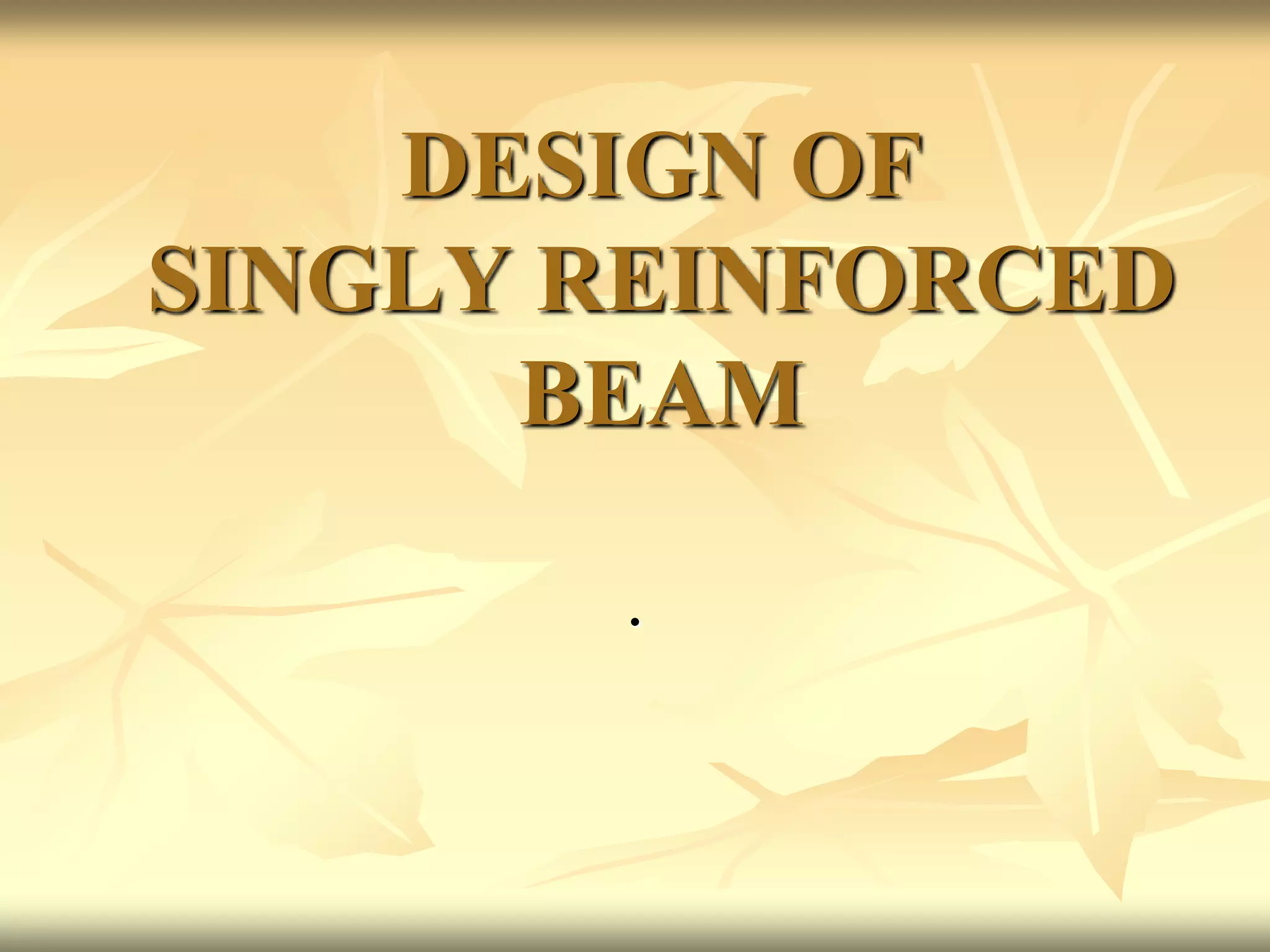 This document provides definitions and design considerations for singly reinforced concrete beams. It defines key terms like overall depth, effective depth, clear cover, and neutral axis. It explains that a singly reinforced beam only has steel reinforcement in the tensile zone below the neutral axis. Beam design aims to select member dimensions and reinforcement amount to safely support loads over the structure's lifetime. Singly reinforced beams can be designed as balanced, under-reinforced, or over-reinforced sections depending on steel reinforcement ratio. Basic design rules cover effective span, depth, bearing capacity, deflection limits, and reinforcement requirements.