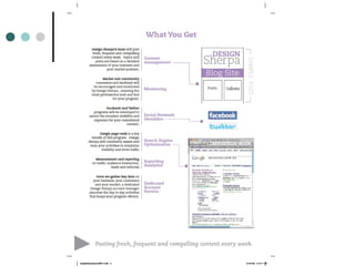 There are two main social media marketing paths for home improvement professionals: networking with existing customers and contacts, and content marketing to attract new prospects. Networking involves using social networks like Facebook to engage current customers and prospects, while using blogs as networking tools. Content marketing uses blogs to create and distribute helpful content that both attracts new prospects through search and builds an audience. Evidence shows that an active content marketing strategy across social media platforms can significantly increase web traffic and organic search rankings over time without large advertising budgets. Regular posting of helpful content is key to success.