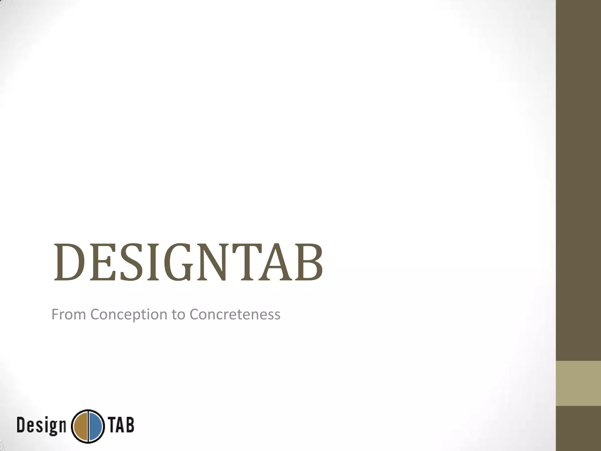 This document provides an overview and development process of DesignTab, a website intended to provide tutorials and articles about web design. It discusses the initial goals of being friendly, informal, and easy to follow. It then covers choosing WordPress for the blog platform and Invision Power Board for the forum platform. Details are given about customizing the themes and plugins used. The document also describes lessons learned from early tutorial recordings, such as the need for better audio quality and camerawork. Finally, it outlines future plans, such as creating a custom platform, using version control, and conducting post-launch analytics.
