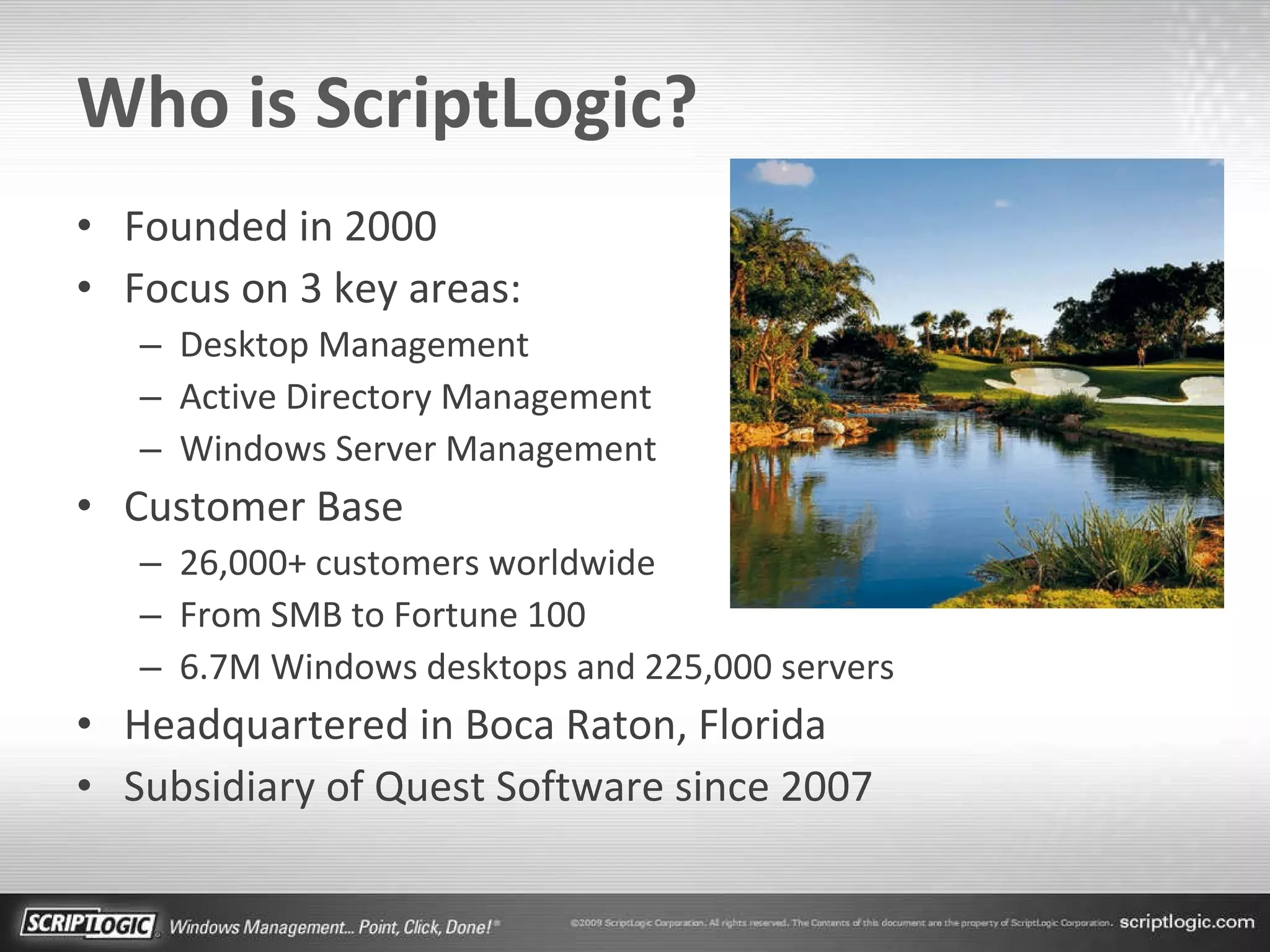 The document discusses desktop management solutions and introduces Desktop Authority software. It summarizes Desktop Authority's capabilities for computer-based management, user-based management, and remote support. It also notes that Desktop Authority can complement Microsoft System Center Configuration Manager (SCCM) by adding granular configuration, standardized user environments, and advanced remote support features.