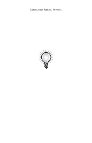 This document discusses finding one's sense of purpose and greater meaning in life. It suggests that many people feel they are meant to do something bigger but get caught up in daily demands. The introduction describes a conversation where participants openly discussed their frustrations with not knowing their deeper purpose. The chapter then explores signs that one may be ready to seek purpose, and signs that a sense of greater purpose is breaking through into one's awareness. It asserts that we all have an encoded sense of purpose within us, and moments when it breaks through can profoundly impact our view of ourselves and life.