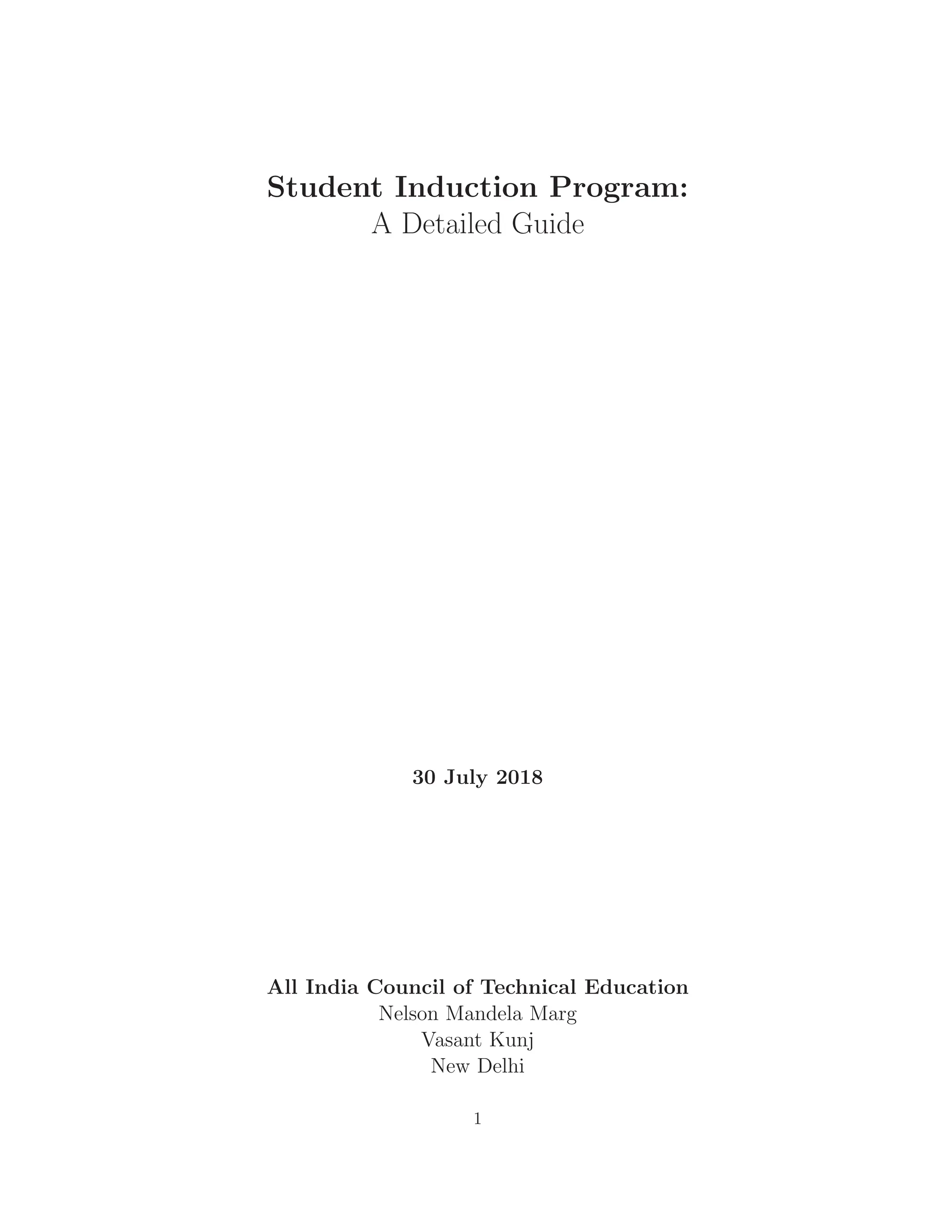 The document provides a comprehensive guide for a Student Induction Program designed to help new students acclimatize to college life. It details the program's purpose, activities, and schedule, emphasizing physical activity, creative arts, mentoring, and familiarization with the institution. The aim is to build bonds, foster self-exploration, and prepare students for their academic journey while integrating values and character development.