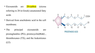 prostaglandins (PG), prostocyclin(PGI2) ,