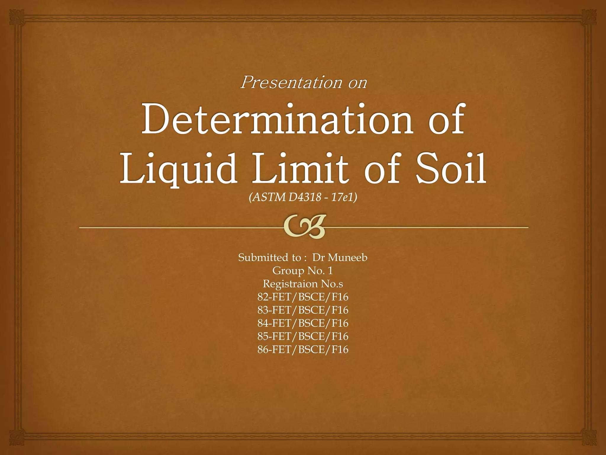 This document describes the procedure to determine the liquid limit of soils according to the Casagrande cup method. It provides background on the concept of the Atterberg limits and defines the liquid limit. The objective is to establish the relationship between moisture content and blows to determine the liquid limit value. The apparatus and step-by-step procedure are outlined. An example calculation is shown. References for additional information are also provided.