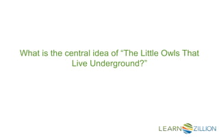 The document provides a lesson on determining the central idea of a text. It explains that the central idea is what the text is mostly about. To identify the central idea, one should ask who or what the text is about, and what the author says about that topic. The central idea should contain the topic and the author's main point about that topic, while summarizing what the text is mostly discussing.