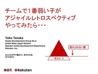 2014年8月23日のDevLOVE甲子園 西日本大会で登壇させて頂きました。 ↓↓↓↓↓ ノーカット版はこちら ↓↓↓↓↓ http://www.slideshare.net/rakutentech/1-38624272