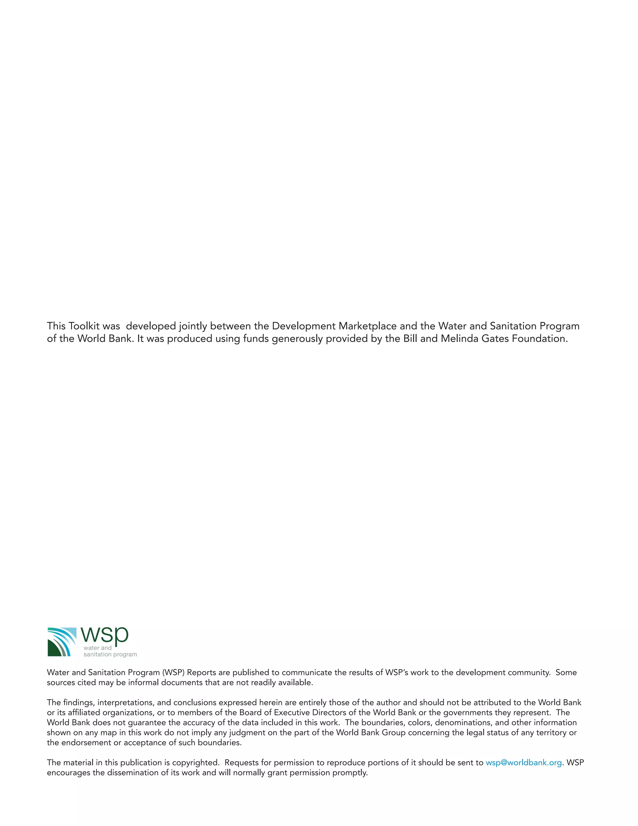 This toolkit was developed by the Development Marketplace and the Water and Sanitation Program of the World Bank to provide guidance to grantees on project design, monitoring, and evaluation for small innovative projects. It contains information on updating project objectives, identifying key assumptions, measuring progress, developing monitoring and evaluation plans, and ensuring sustainability. The toolkit aims to help grantees strengthen their project design and management through effective monitoring, evaluation, and learning.