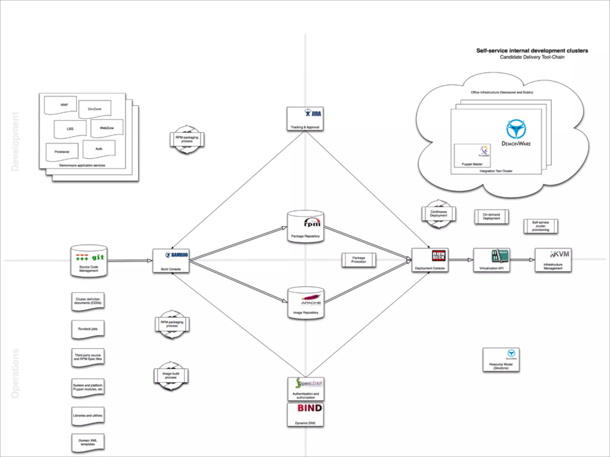 The document discusses lessons learned from trying to implement DevOps in a rapidly growing company. Some key lessons include: (1) being able to clearly articulate what DevOps means for both individuals and the organization; (2) trusting developers and providing them with what they need; and (3) starting DevOps efforts with a focus on development environments rather than just production. The document also emphasizes focusing on toolchains rather than individual tools, using a service delivery pipeline approach, and ensuring good communication and hiring practices.