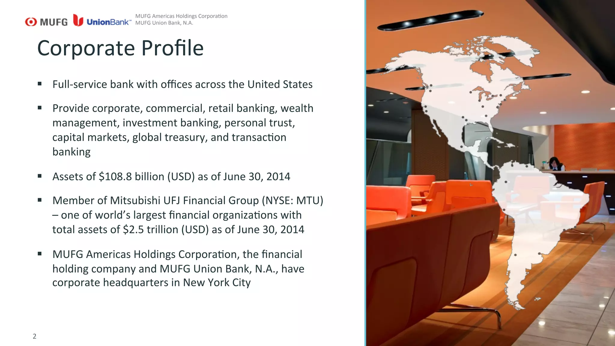 MUFG Union Bank is a large financial institution that is adopting a DevOps methodology to transform its IT organization and processes. DevOps combines software development and IT operations to improve collaboration and delivery of new applications. This will help MUFG Union Bank address challenges like releasing apps faster to meet customer demand and improve the customer experience. The bank plans to implement DevOps through changes to its people, processes, technology, and governance to develop a more nimble IT structure that can quickly adapt to business needs in today's application economy. Early results show DevOps reducing testing costs and times along with decreased application development times.
