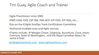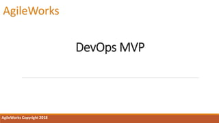 The document outlines the importance of using a Minimum Viable Product (MVP) approach for implementing DevOps in organizations, highlighting the dangers of a big bang deployment. It discusses how a DevOps MVP can minimize risks, deliver business value, and improve processes through an incremental and iterative approach. Key advantages of this method include rapid feedback, issue identification, and building team confidence, while also identifying common pitfalls to avoid.