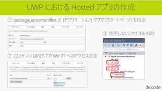 //アプリケーションの URL を追加 <allow-navigation href="https://contoso.com/myApp"