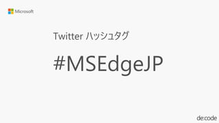 たった今と、ほんの少し未来の話」 • 場所 ルーム F • 時間 9:30 – 10:30 • CHK-007 「Windows 10 のブラウザー、Edge のこれからについて」 • 場所 いちょう • 時間 14:25 – 15:25