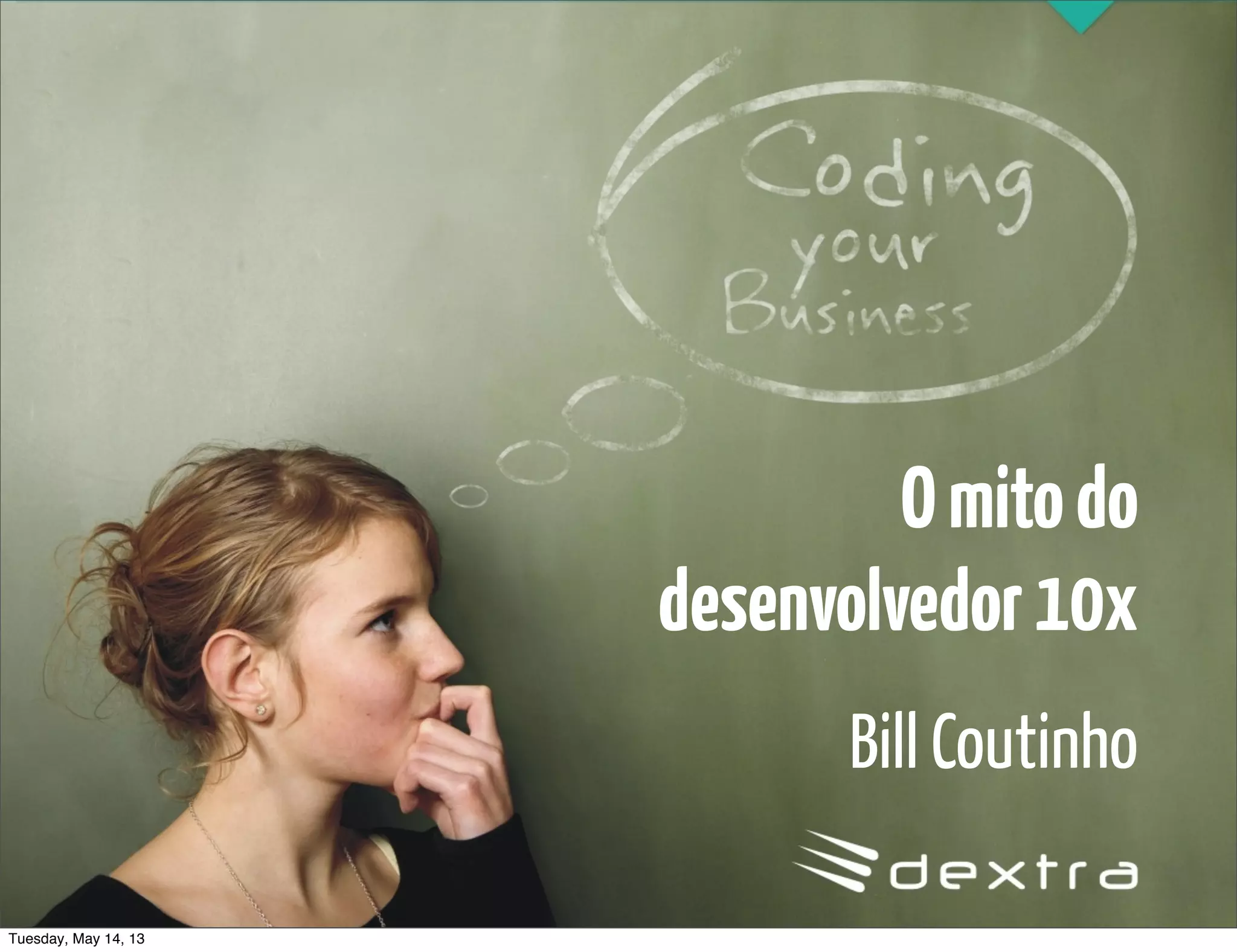 The document discusses the concept of a "10x developer" who is 10 times more productive than an average developer. It notes that while studies on the concept are inconclusive and productivity is difficult to measure, some developers may have a significant impact through extensive experience and expertise gained from years of practice in a community of software craftspeople. Rather than focusing on any individual developer's productivity, the document emphasizes that building strong teams and companies through collaboration and leveraging open source tools and communities is more important.