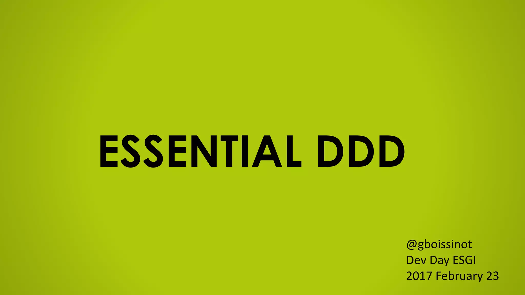 This document provides an overview of domain-driven design (DDD). Some key points: