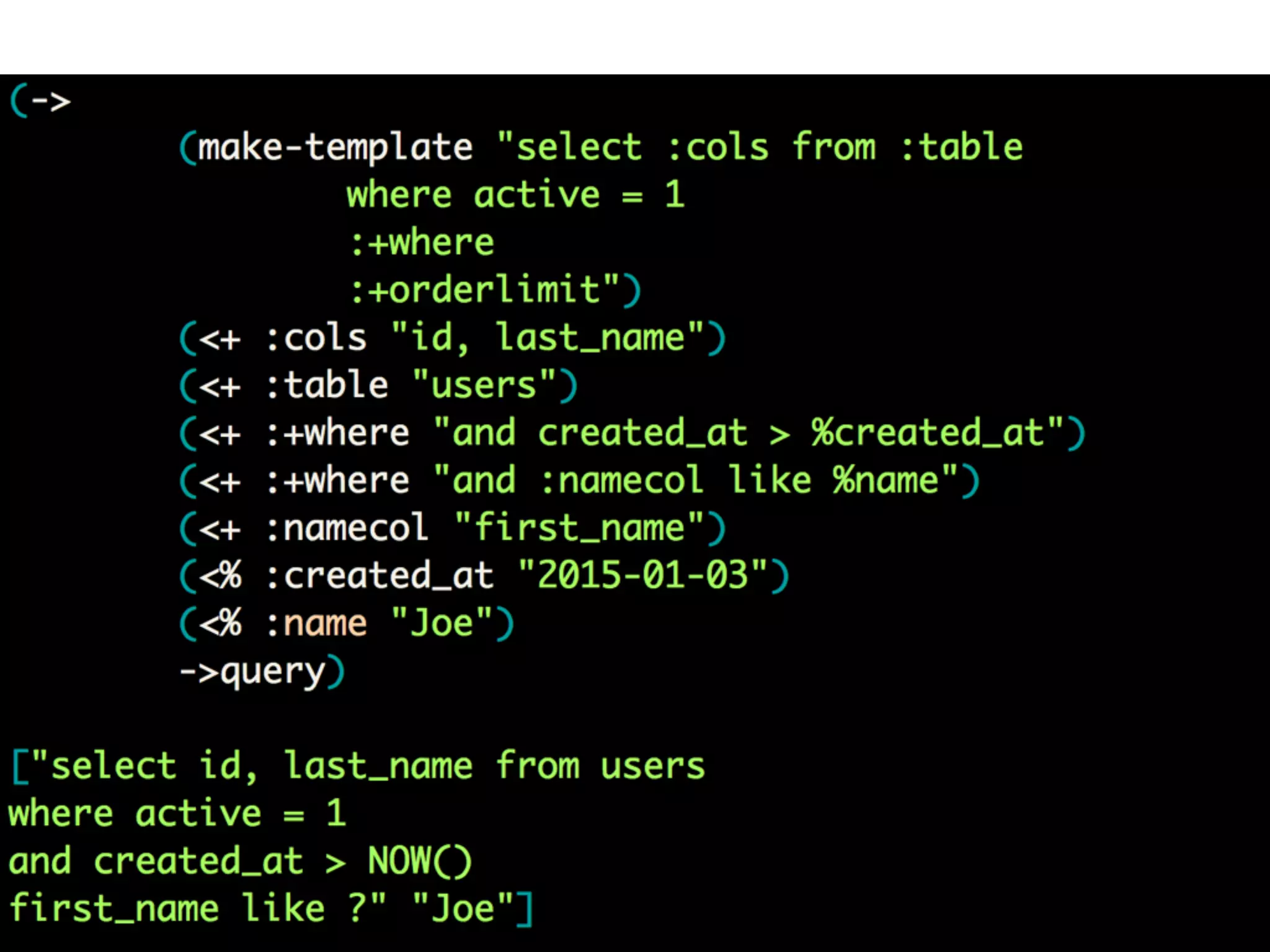 • %name - vloží ? do SQL a hodnotu do parametrů,
