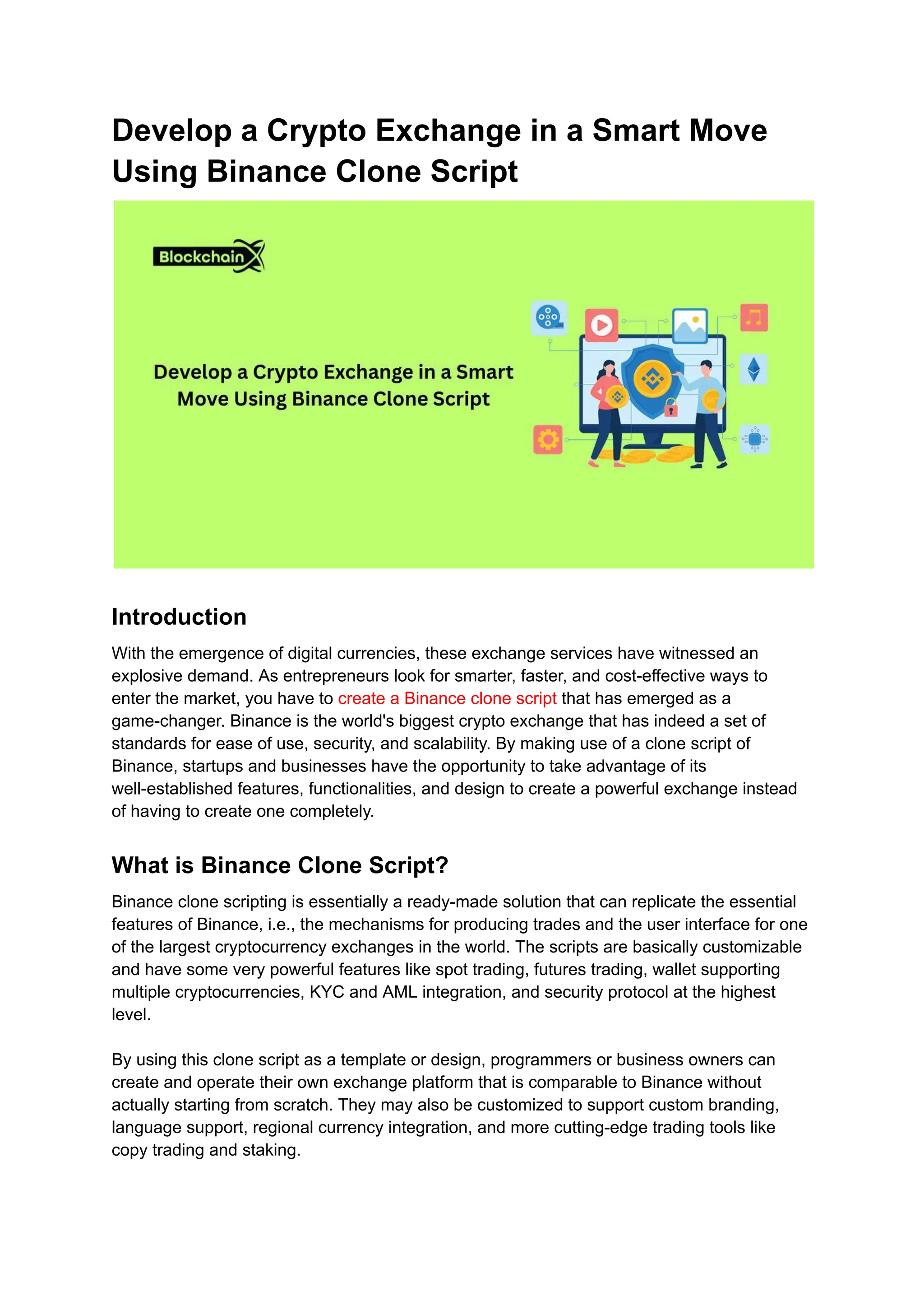enter the market, you have to create a Binance clone script that has emerged as a