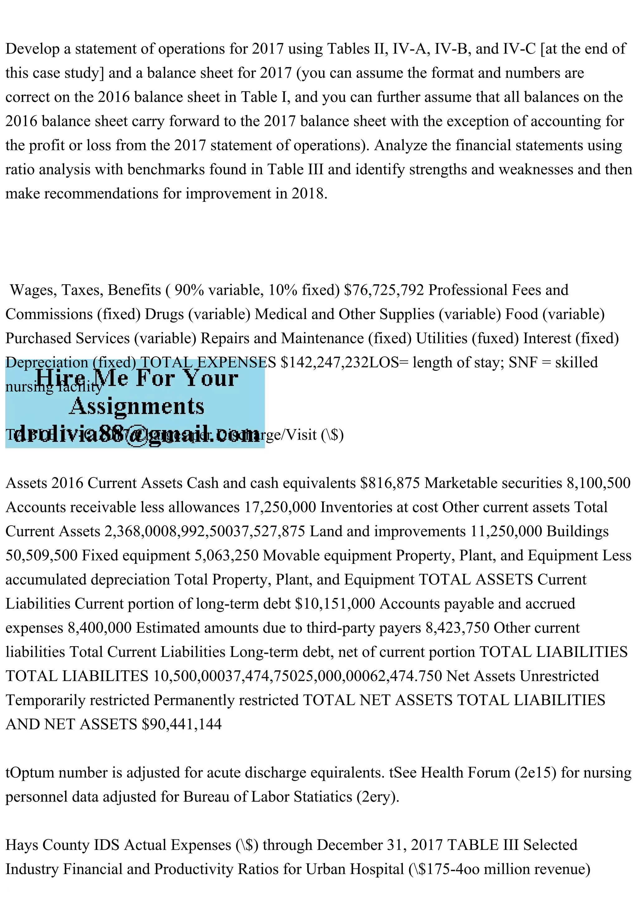 The document outlines the development of a statement of operations and a balance sheet for 2017, using existing data from 2016 while adjusting for profit or loss. It emphasizes conducting ratio analysis based on provided benchmarks to identify financial strengths and weaknesses, and it suggests recommendations for performance improvement in 2018. Key financial figures related to expenses, assets, liabilities, and capital structures are also discussed.