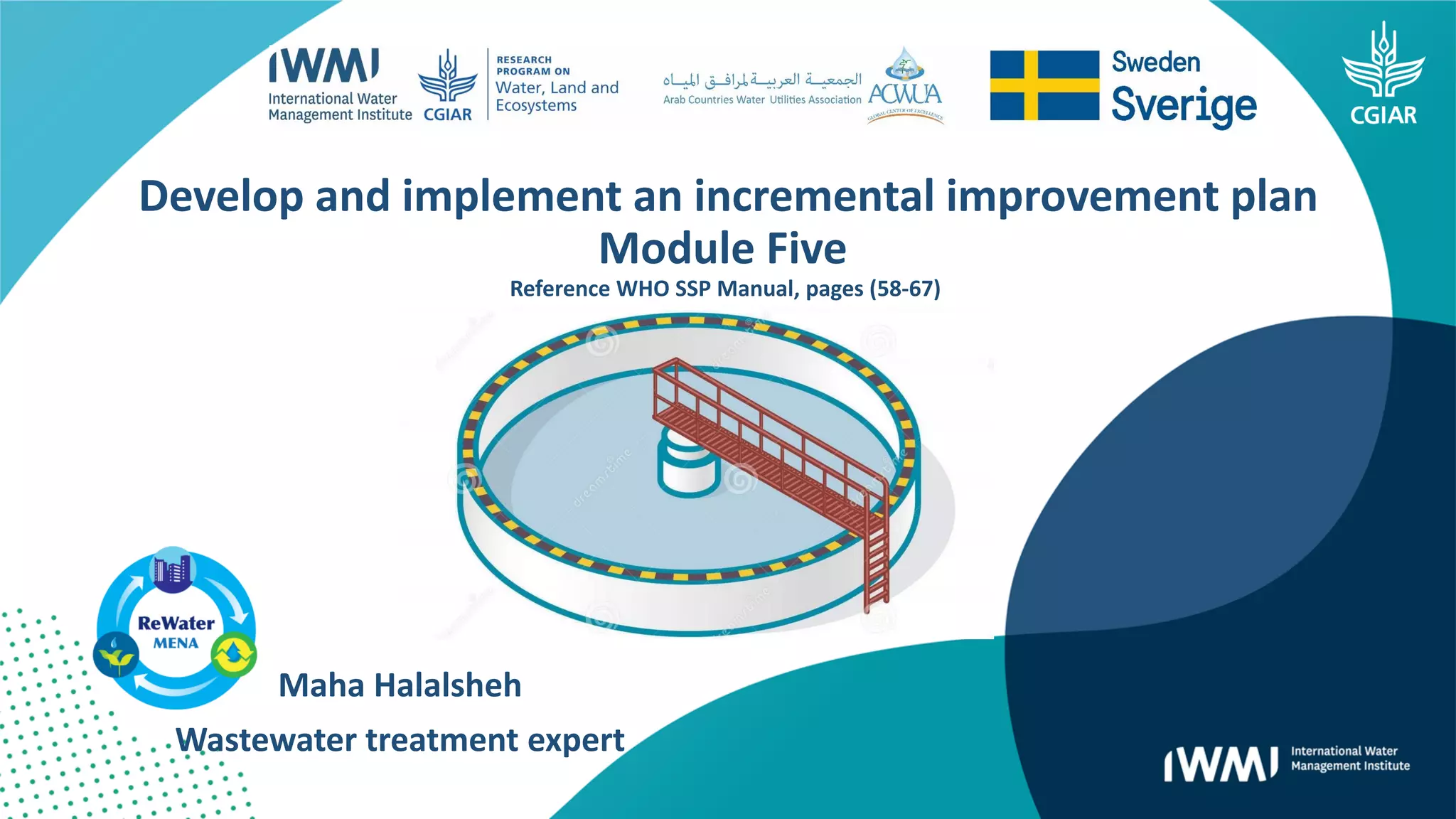 The document outlines an incremental improvement plan for wastewater treatment, focusing on risk control measures based on WHO's SSP manual. It emphasizes assessing existing controls, selecting appropriate options, determining roles, responsibilities, and funding, and monitoring the effectiveness of implemented actions. The plan aims to enhance sanitation practices by incorporating both operational and behavioral measures to protect all exposure groups.