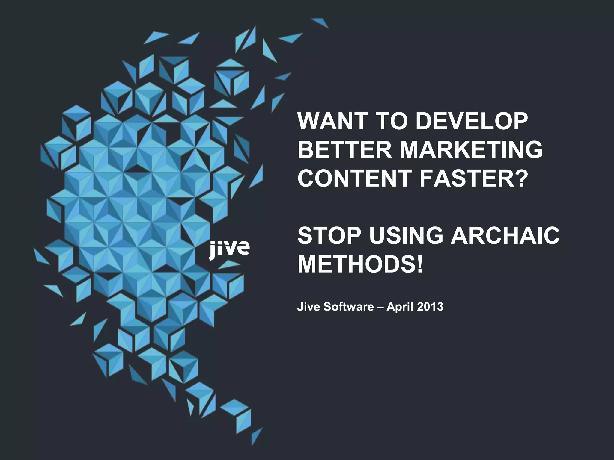 The document discusses the inefficiencies in marketing content production, highlighting that many sales teams don't utilize the majority of available content due to outdated processes. It outlines five key challenges in asset development and emphasizes the need for improved collaboration through social business platforms, which can enhance visibility, access to information, and involve external partners effectively. The proposed solutions lead to quicker content development, increased productivity, and reduced costs in sales support.