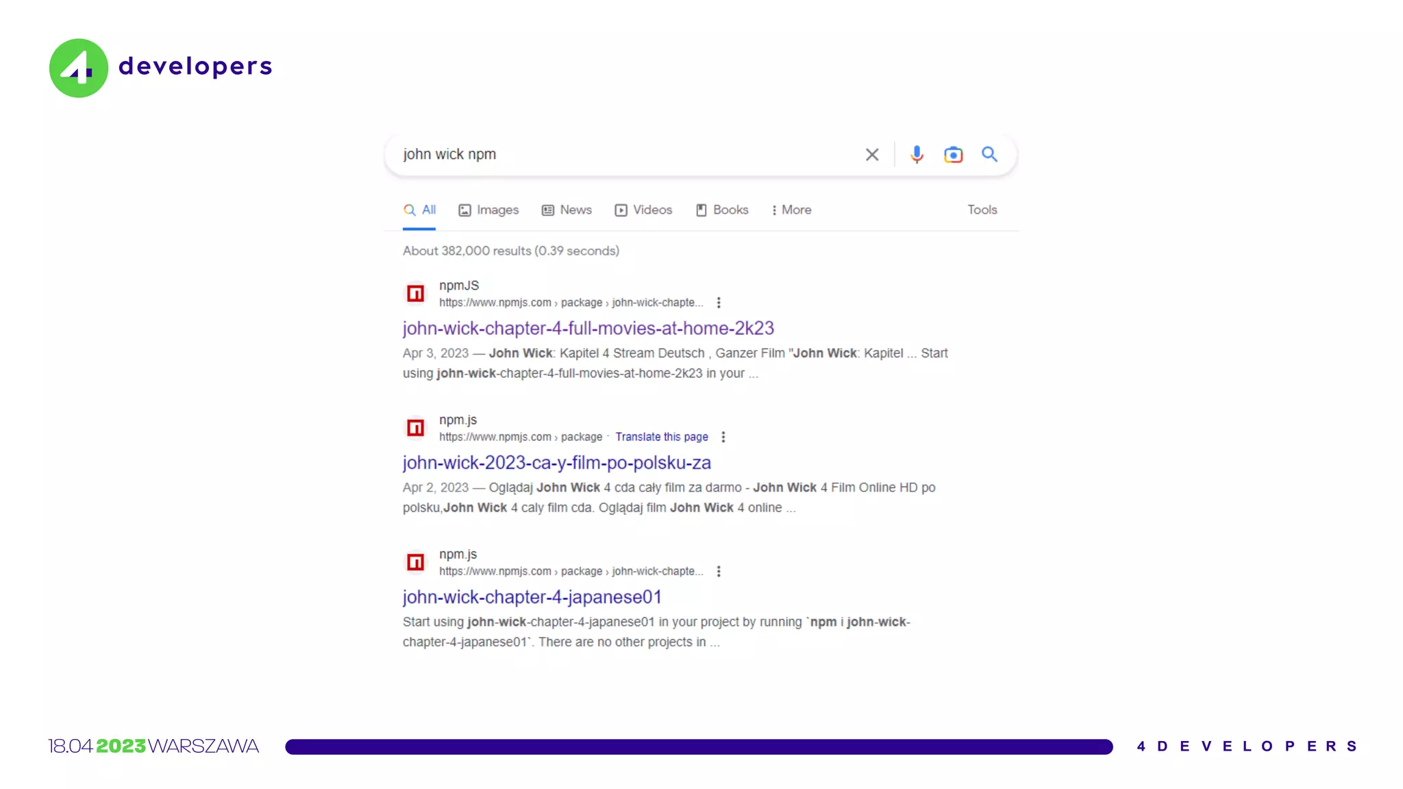 The document discusses various security issues in software dependencies, particularly focusing on npm and related ecosystems. It highlights various attack vectors including typosquatting, dependency confusion, and software vulnerabilities, along with recommendations for maintaining security awareness among developers. The importance of using official sources, enabling two-factor authentication, and implementing proper infrastructure security practices is emphasized to mitigate risks.