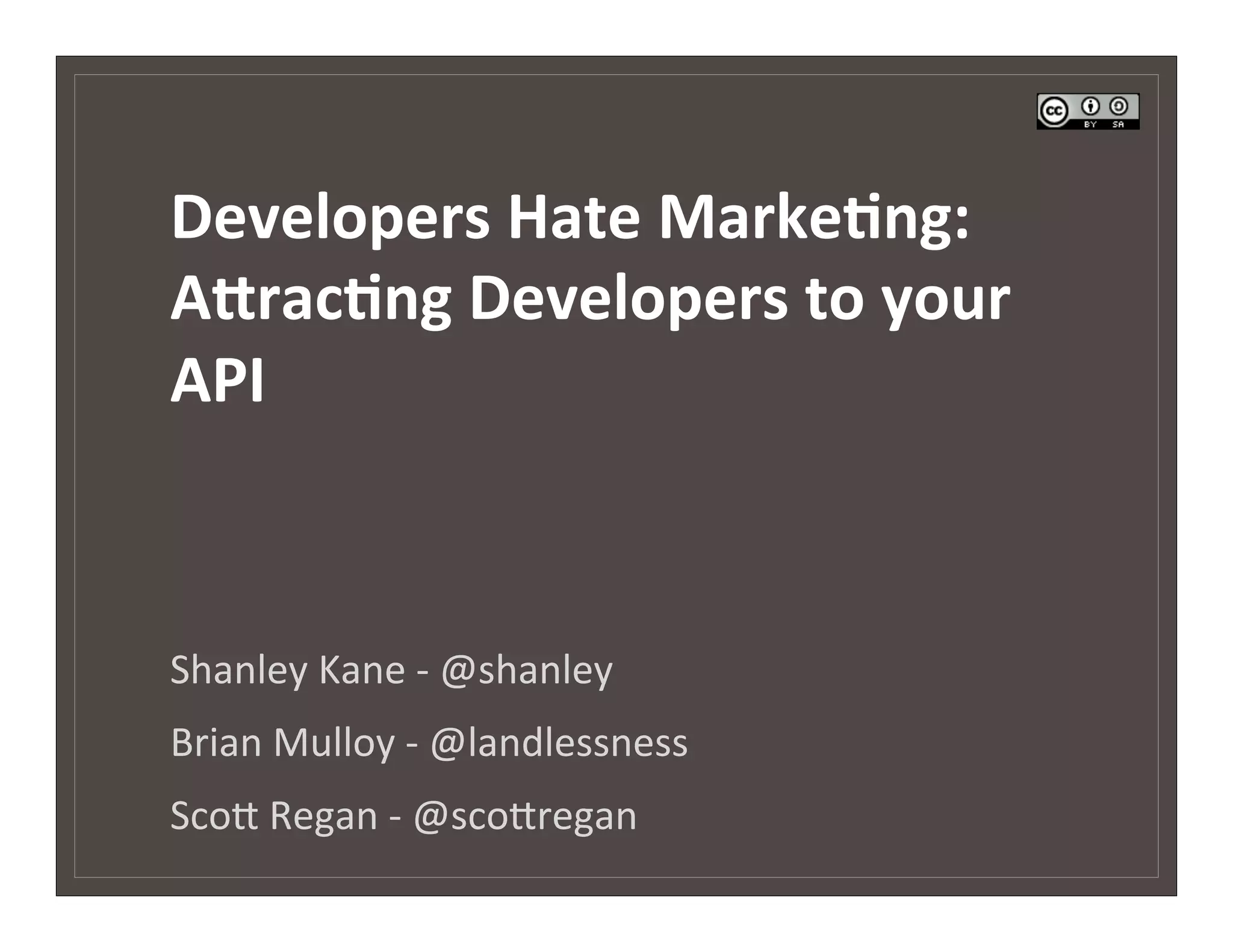 The document discusses the evolving role of developers in influencing software adoption, emphasizing the need for a shift from traditional marketing strategies to engaging and supporting developers directly. It suggests that successful API programs focus on community building, providing resources, and creating awareness tailored to developer needs. The authors highlight the importance of integrating developer feedback and fostering environments where developers can collaborate and assist one another.
