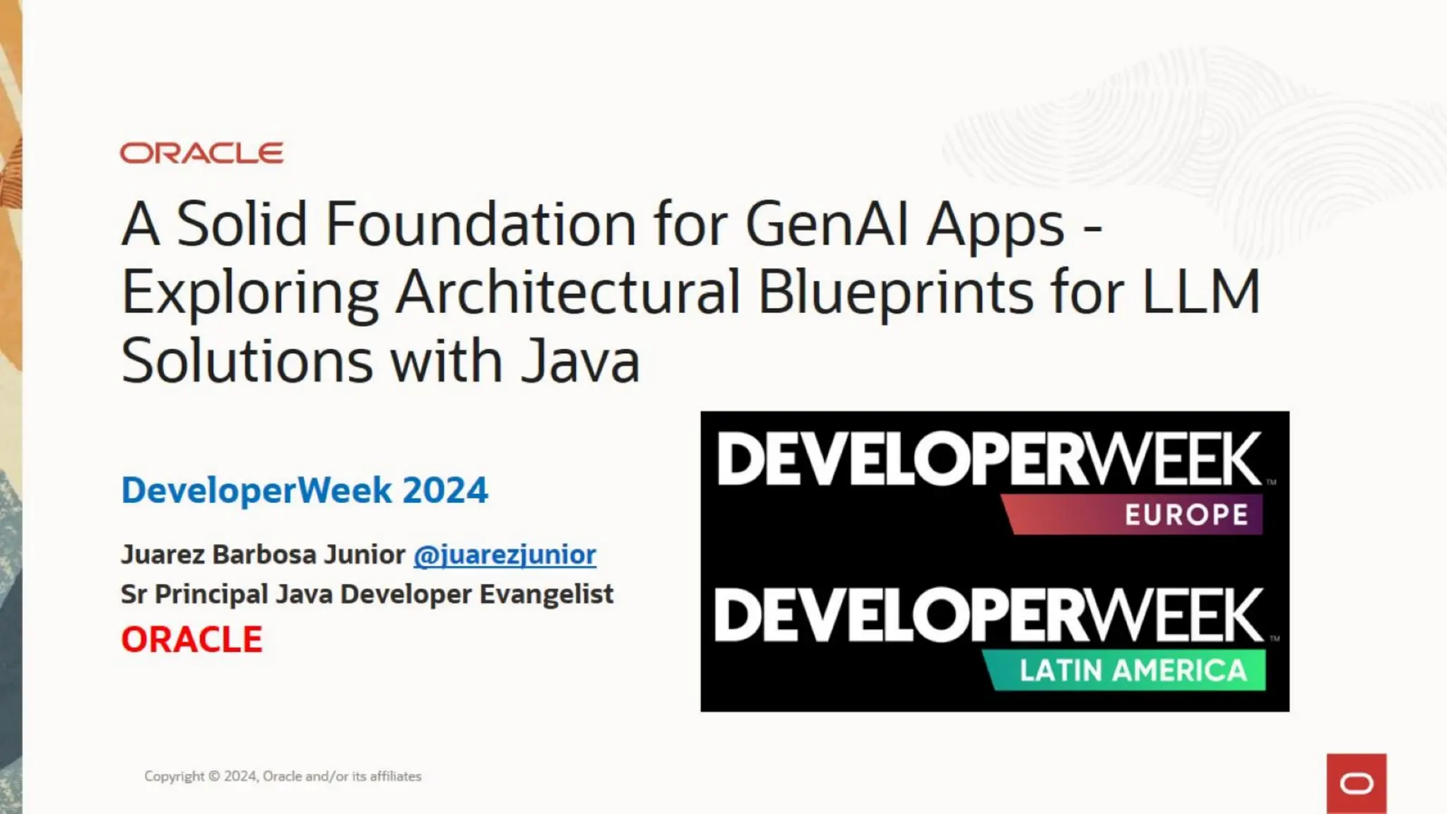 DeveloperWeek USA - A Solid Foundation for GenAI Apps - Exploring Architectural Blueprints for LLM Solutions with Java