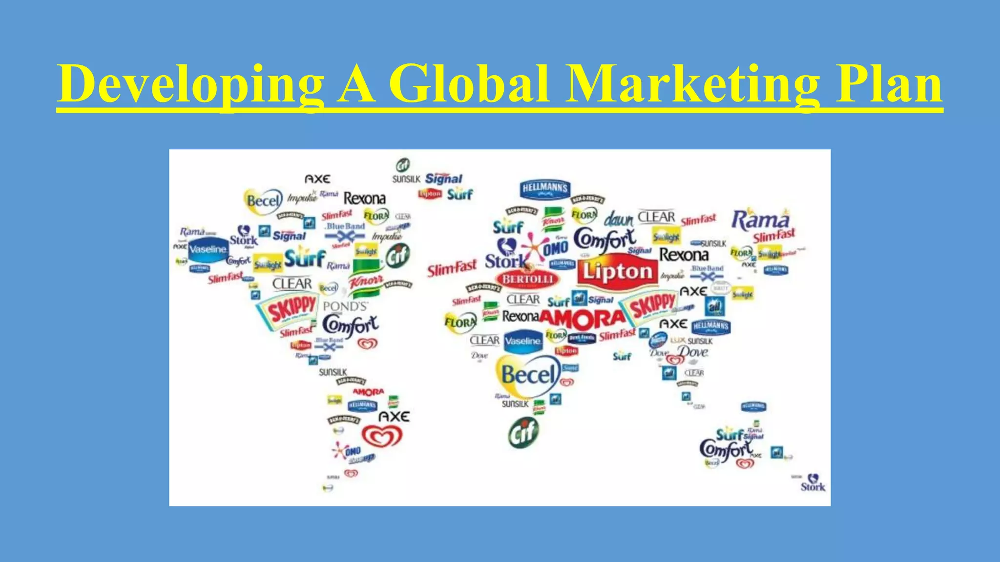 The document outlines a global marketing plan that consists of three phases: planning, implementation, and control. It emphasizes the importance of defining business objectives, conducting a SWOT analysis, and utilizing the marketing mix (product, price, place, promotion) to effectively reach target segments. Additionally, it highlights the necessity of evaluating performance using metrics to determine the effectiveness of the marketing strategies and make future predictions.