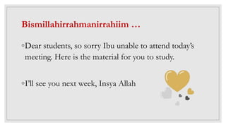 This document provides guidance on developing a good paragraph. It explains that a well-developed paragraph should have three components: a clear topic sentence, relevant supporting sentences, and a closing concluding sentence. It also discusses strategies for adequately developing a paragraph, such as through elaboration, illustration, argumentation, narration, description, classification, analysis, and comparison/contrast. Students are assigned to exchange texts in groups and analyze the paragraphs based on criteria like determining the topic sentence, evaluating relevance of supporting sentences, and identifying strategies for development used.