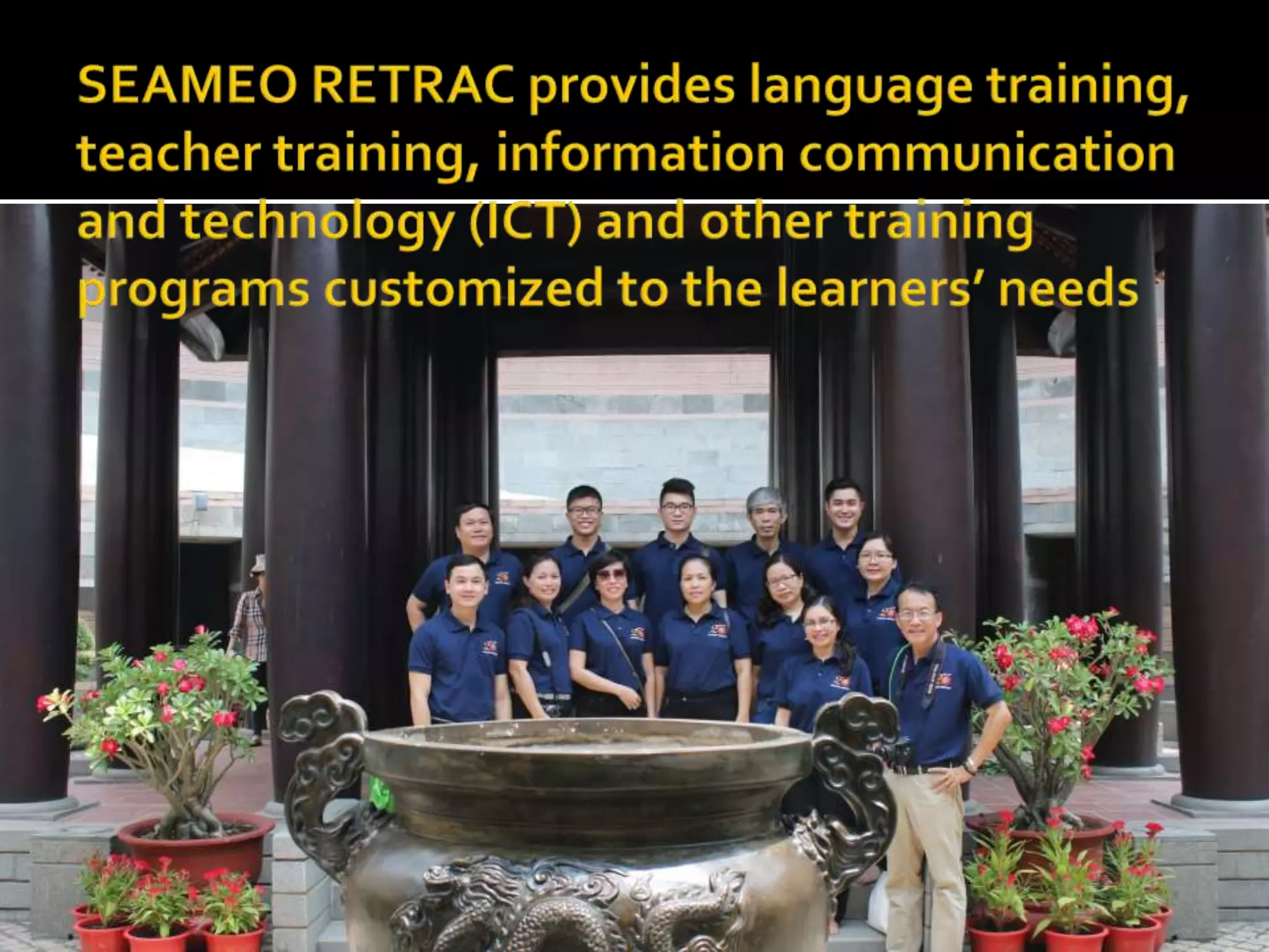 Maria Victoria Pineda from SEAMEO RETRAC focuses on enhancing leadership and management in education across ASEAN countries, particularly in ICT training initiatives for students. The document outlines the evolution of technology in teaching, emphasizing the importance of self-directed learning and the development of ICT skills in the 21st century. It advocates for adaptive training methods that promote participant collaboration and context-based learning experiences.