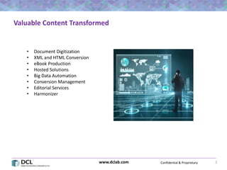 This document discusses developing and implementing a quality assurance (QA) plan when converting legacy data. It recommends planning the conversion by asking important initial questions, learning from others, and preparing for the next steps. The document outlines DCL's project startup methodology, including inventorying and assessing the content to convert, prioritizing what to convert and when, analyzing content reuse, creating a conversion specification, normalizing the data, and viewing converted data during quality control. The overall message is to thoroughly plan the conversion by involving stakeholders, understanding the content, and establishing a solid process.